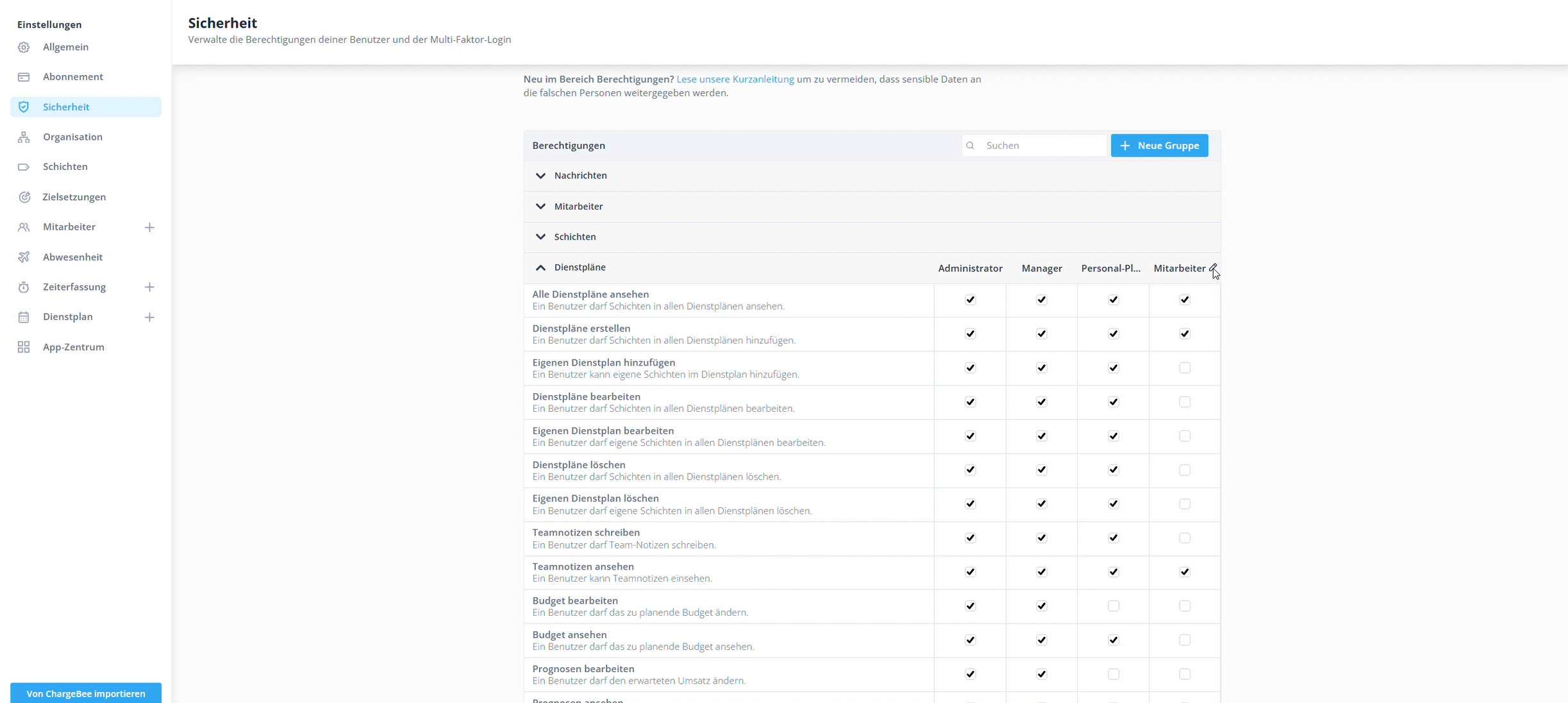 Wenn du sichergestellt hast, dass du die richtigen Berechtigungen pro Berechtigungsgruppe ausgewählt hast, kannst du damit fortfahren, die Berechtigungsgruppen den Mitarbeitern zuzuweisen.
