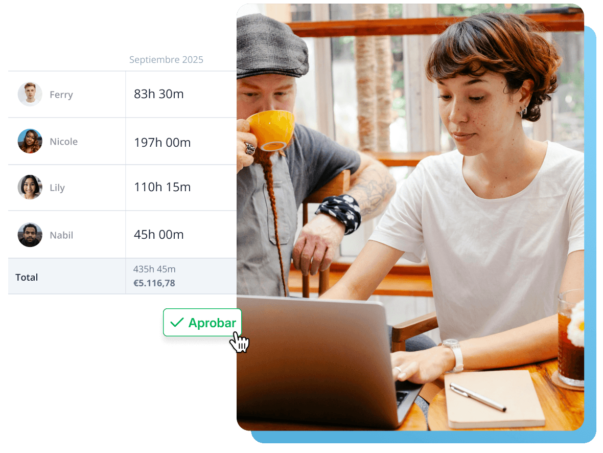 Datos en tiempo real sobre las horas trabajadas, los saldos de vacaciones y las horas extras