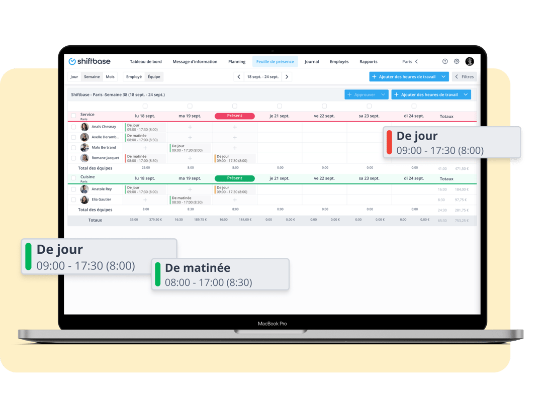 Obtenez des informations détaillées pour gérer votre équipe efficacement et assurer un traitement précis de la paie.