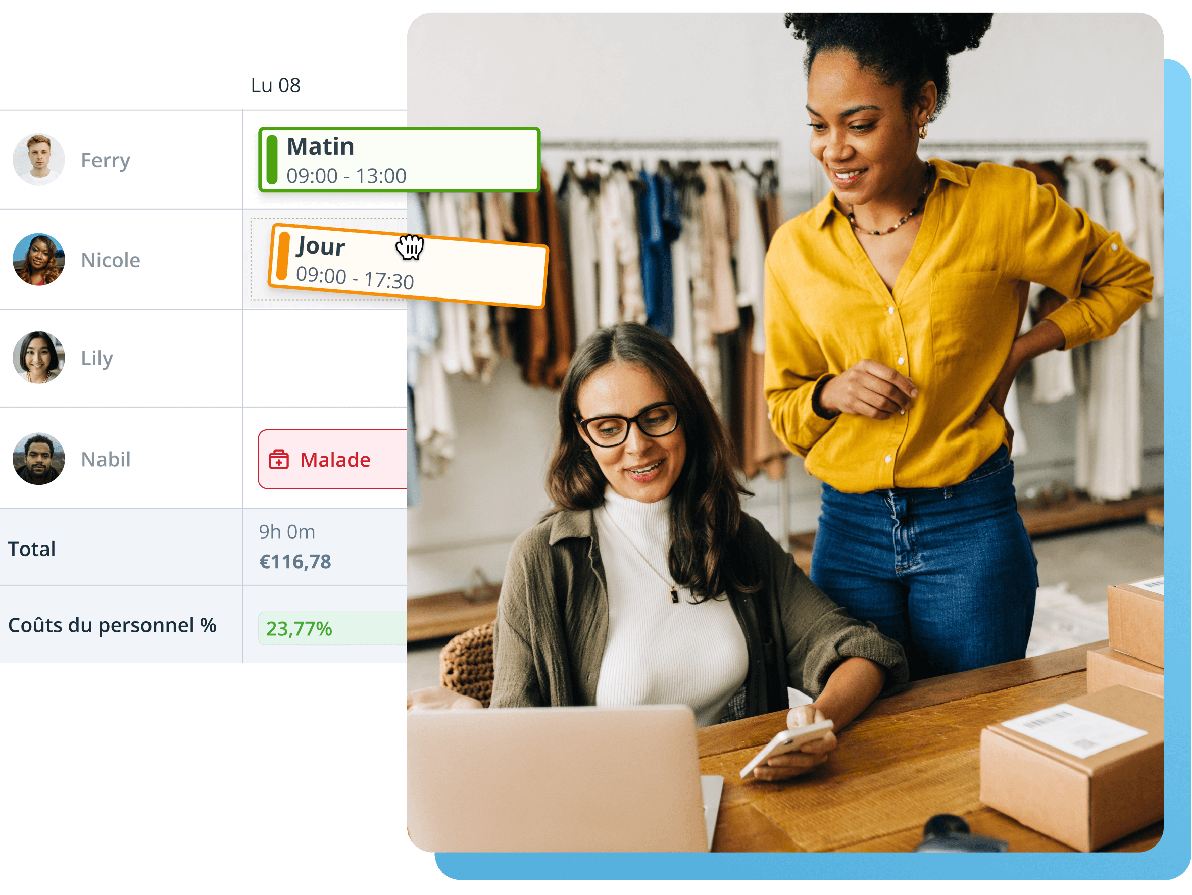 La création de plannings et l'enregistrement des horaires de votre commerce de détail dans une seule application