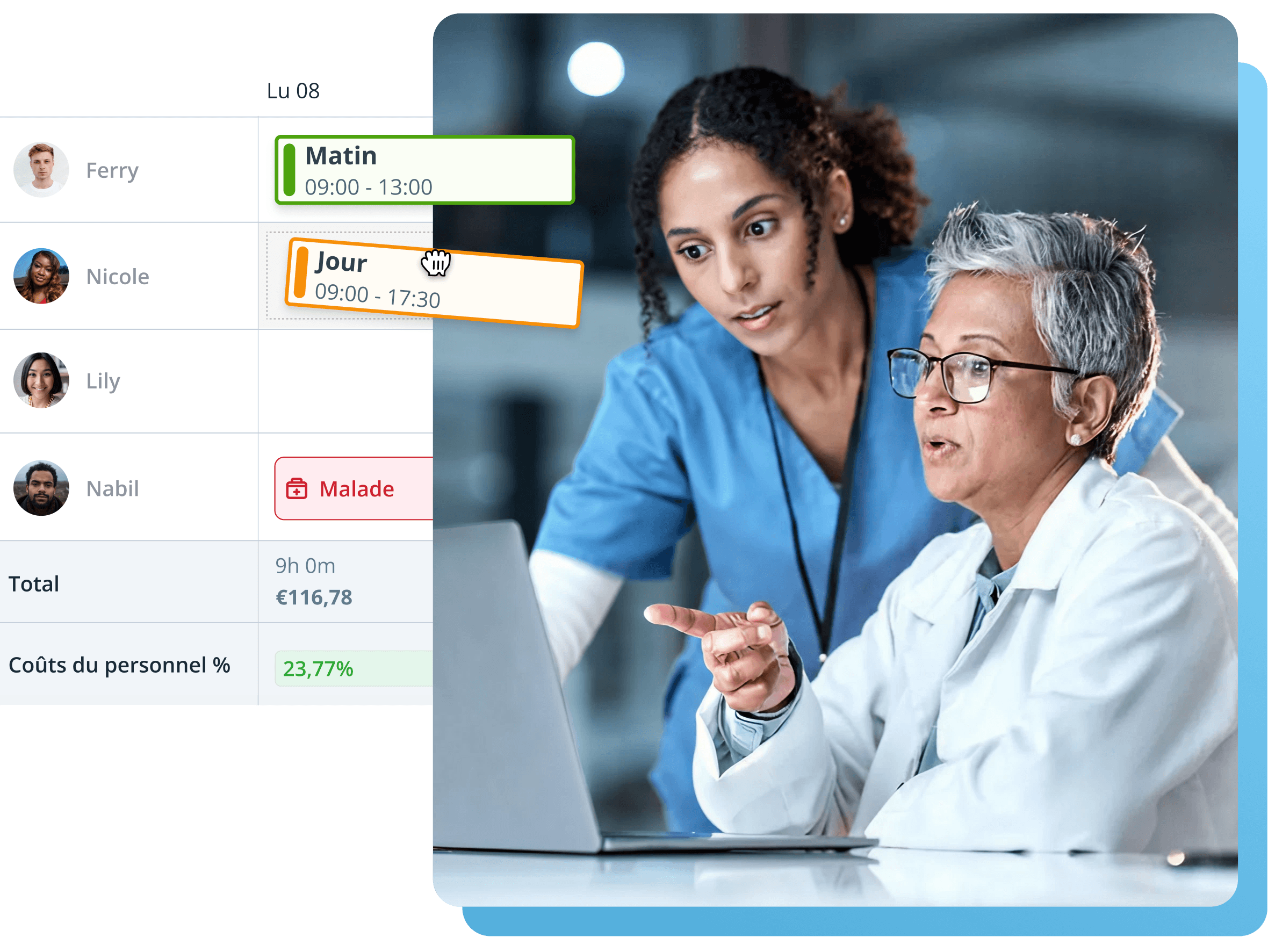 La création de plannings et l'enregistrement des horaires de votre entreprise de soins de santé dans une seule application