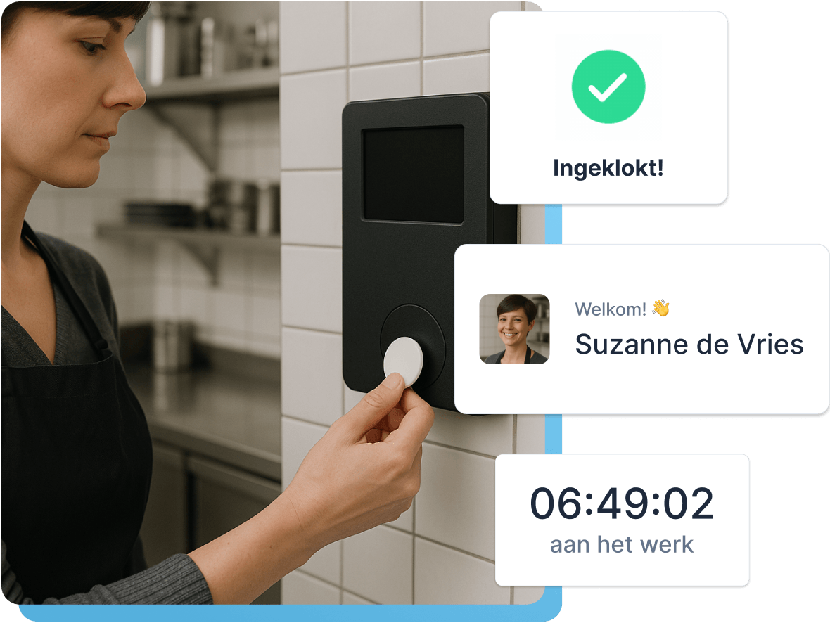 Een digitale prikklok, ook wel tikklok genoemd, houdt automatisch de gewerkte uren bij van jouw medewerkers en geeft jou altijd overzicht over de aanwezigheid van jouw medewerkers. De prikklok zorgt ervoor dat medewerkers snel en makkelijk zelf in- en uitklokken en maakt daarmee urenregistratie een stuk eenvoudiger!