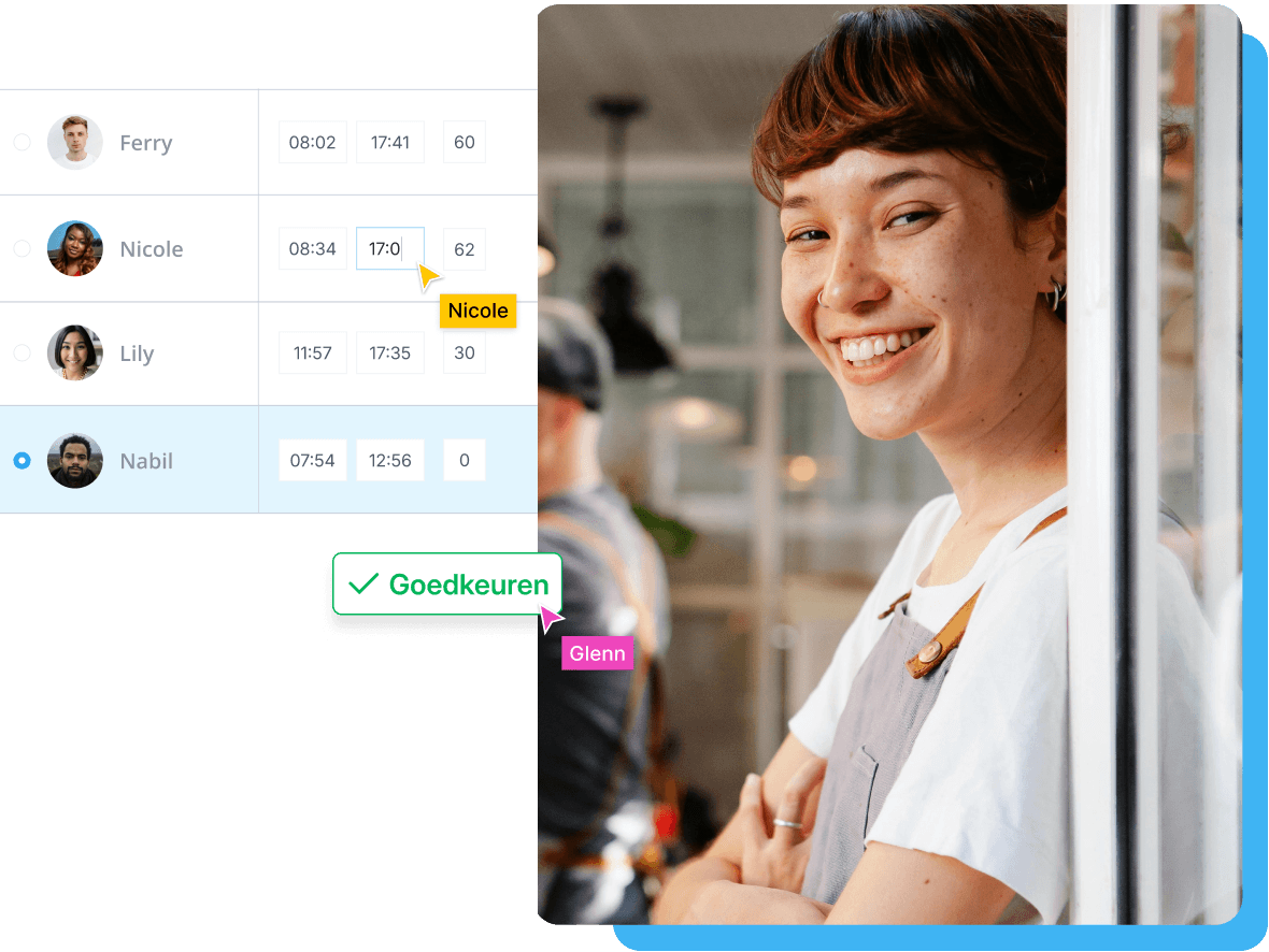 Met een Kiosk app kunnen werknemers in- en uitklokken op een gedeeld apparaat, zoals een tablet of kiosk. Via de virtuele tikklok kunnen werknemers hun persoonlijke gegevens invoeren en hun aankomst- en vertrektijden bijhouden Connectie verloren? Dan is er back-up door het interne geheugen.