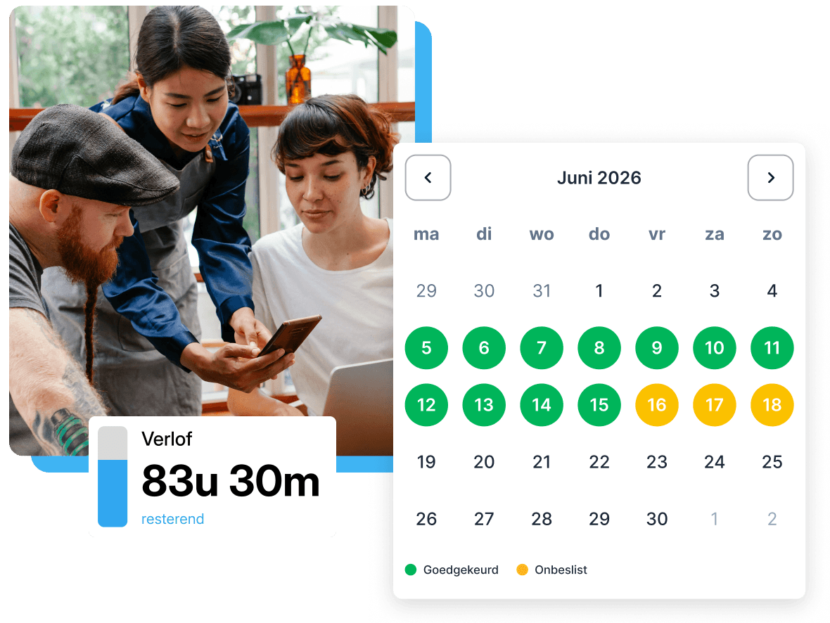 Met Shiftbase registreer je alle soorten verlof digitaal in één systeem. Medewerkers kunnen verlof aanvragen via de app of desktop, waarna dit direct zichtbaar wordt in het rooster. Het systeem houdt automatisch de saldi bij en verwerkt goedgekeurde aanvragen meteen in de planning.